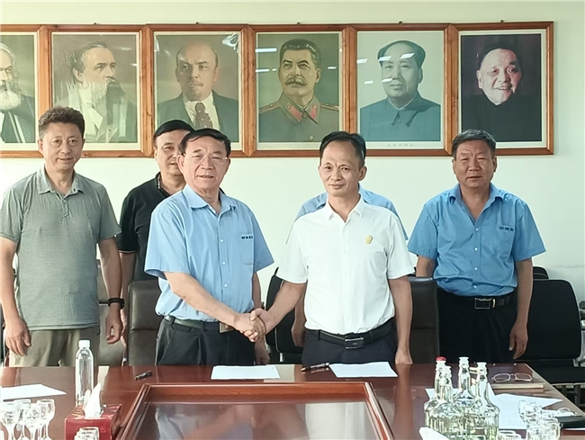 (天科慈航(北京)科技集团有限公司董事长人张小文和山东颐阳酒业有限公司董事长于海先签署合作协议)