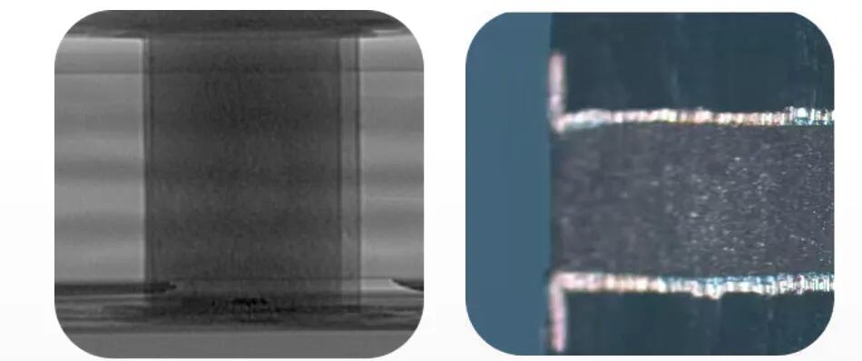 HDI PCB的C-SAM图像(左)与切片图(右)